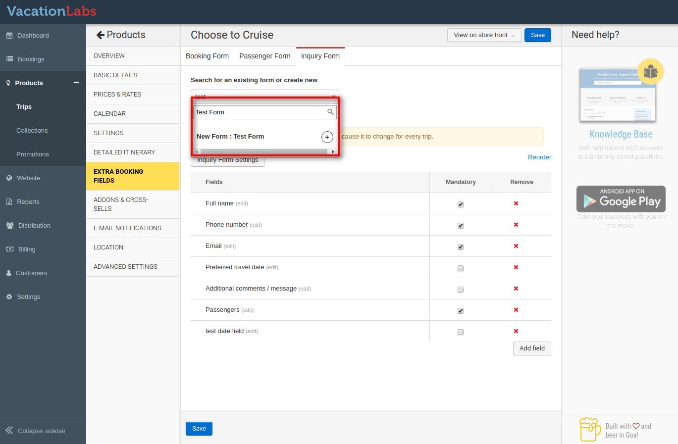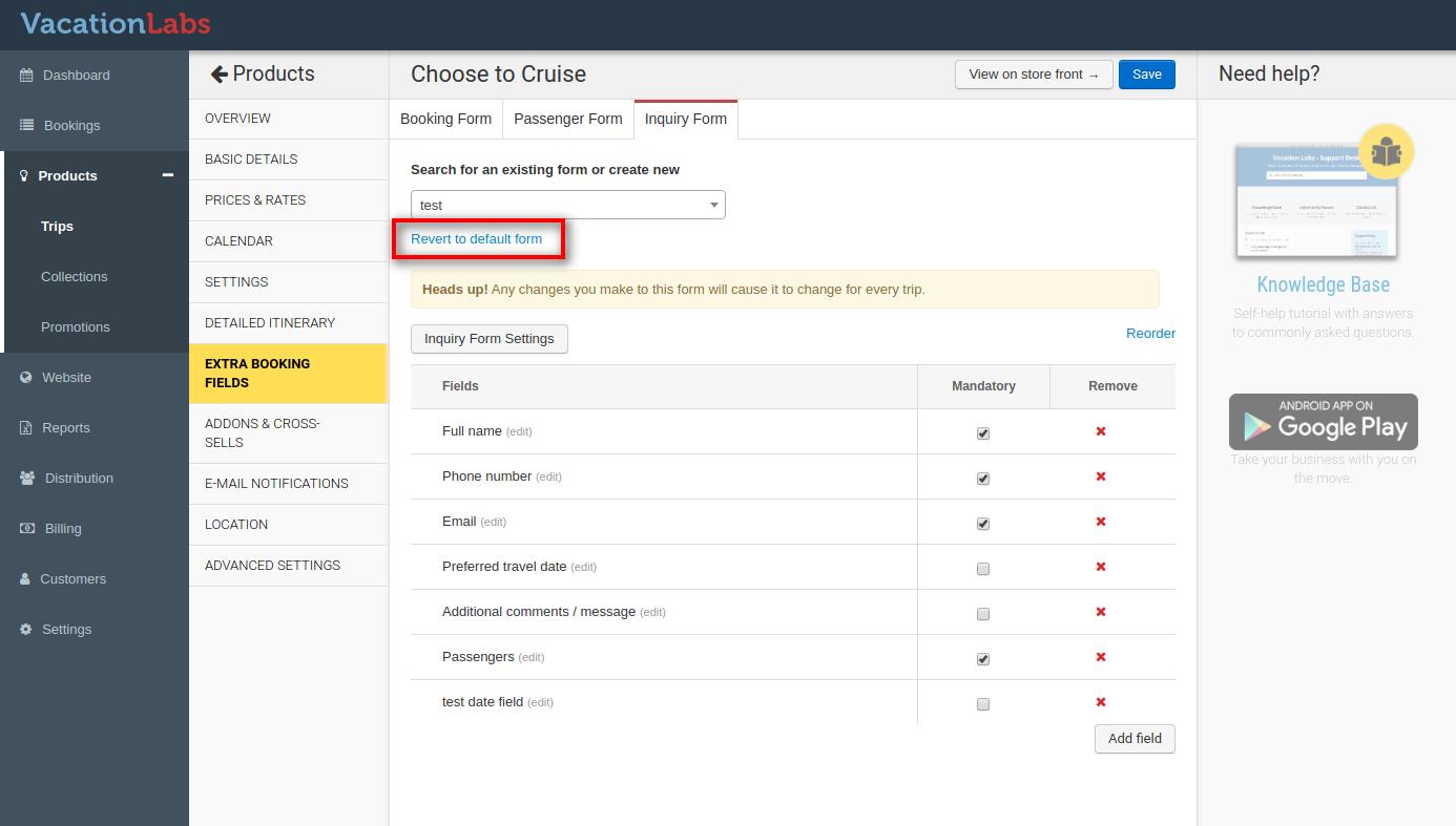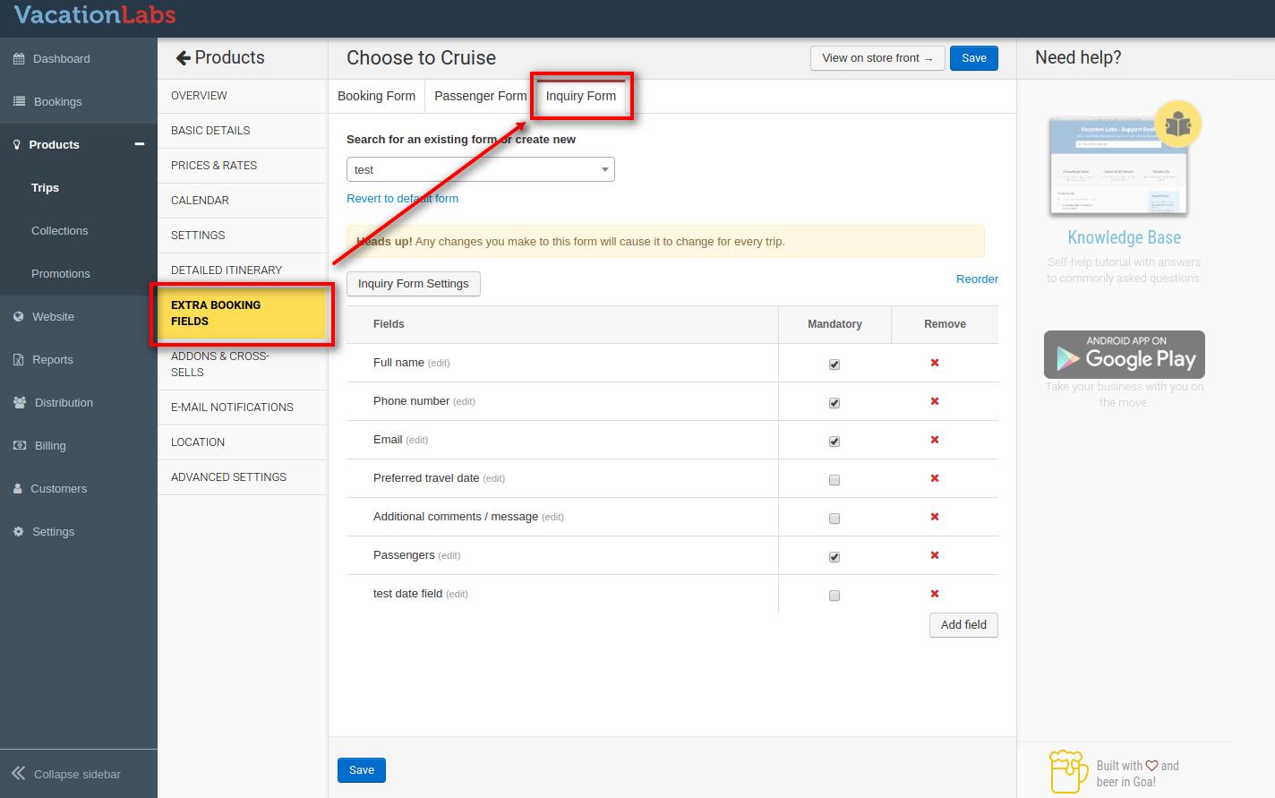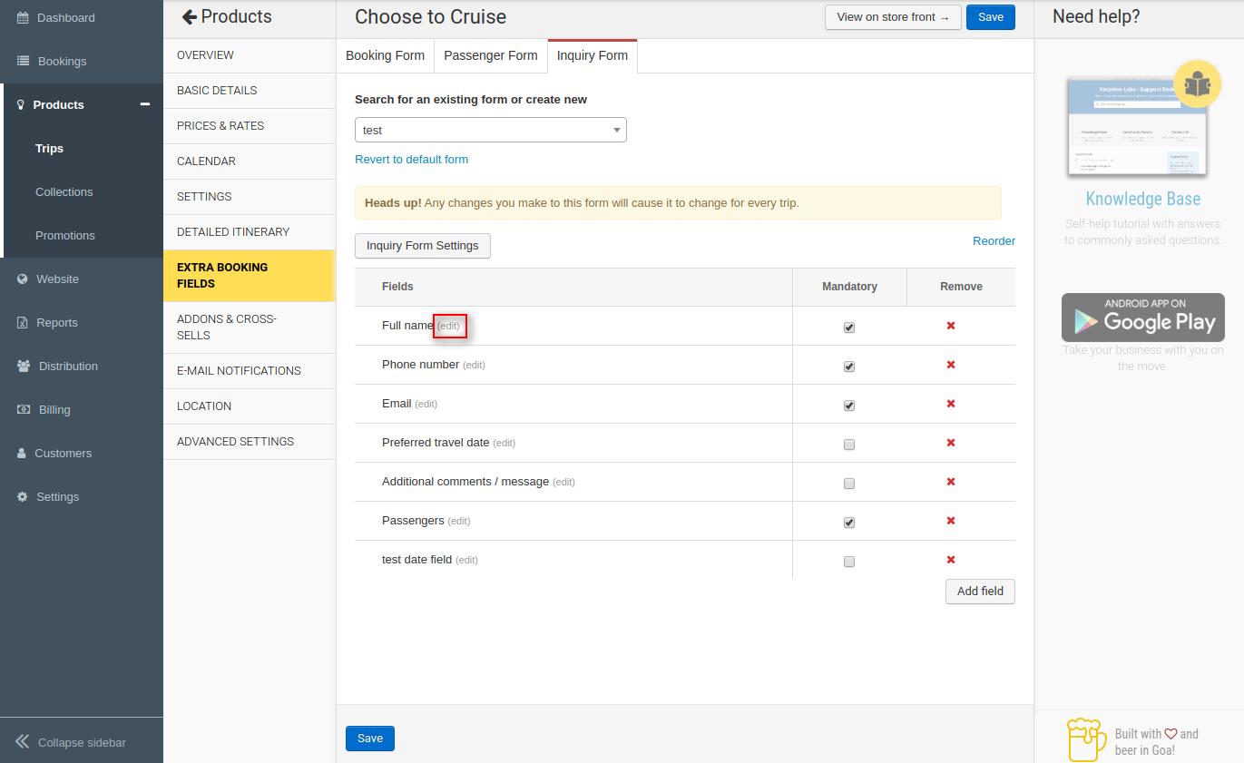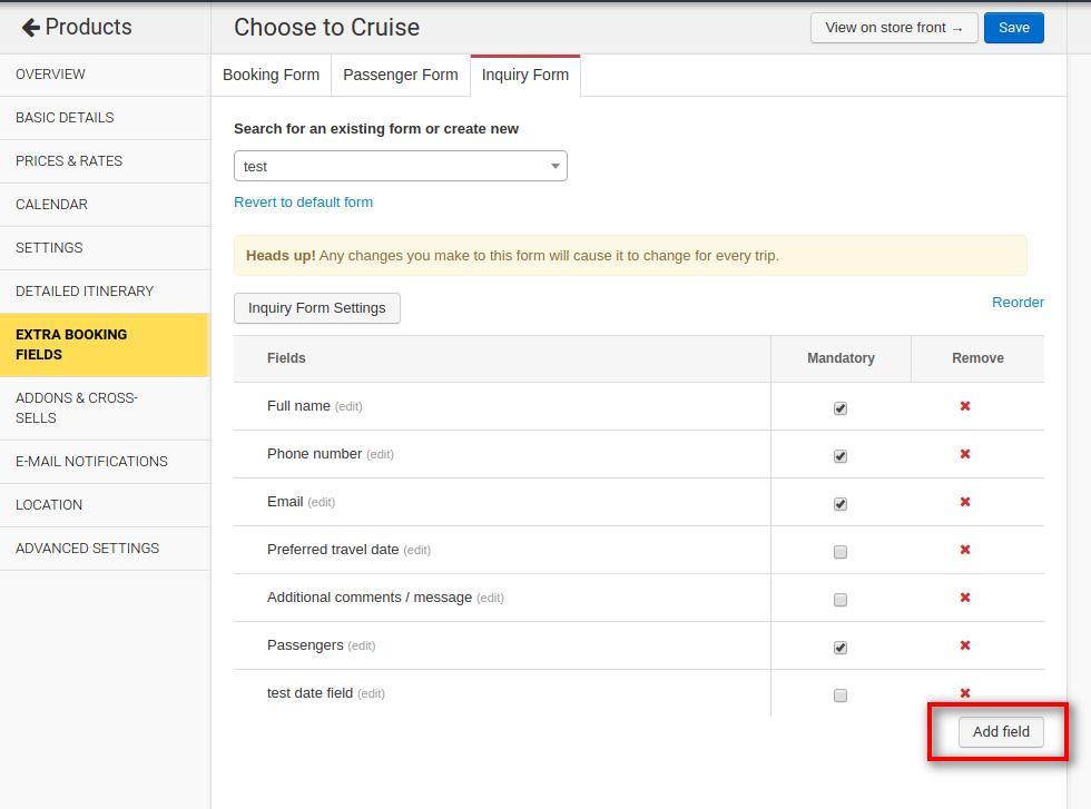 1. Click on the Extra Booking Fields