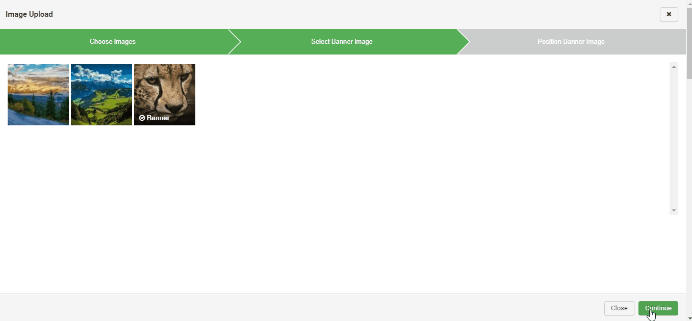 You can then set your banner image by selecting the desired photo, which will appear as the banner on the trip page, on the tour card, and in emails related to the trip.*