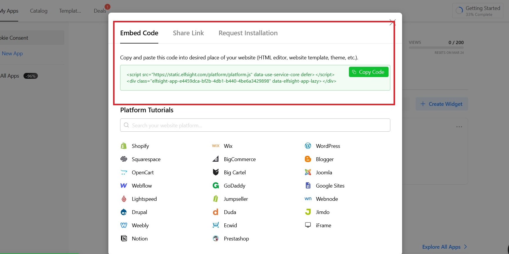 On this page copy the code provided in the Embed Code section (refer screenshot below)