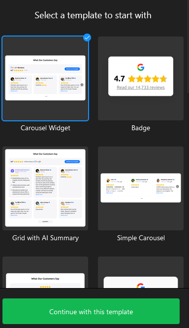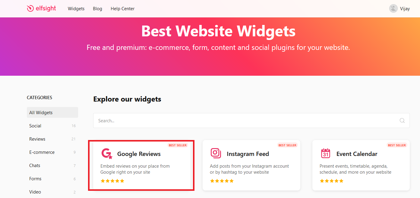 This is similar to generating an Instagram widget. In this case, you need to select the Google Reviews widget from the widgets.
