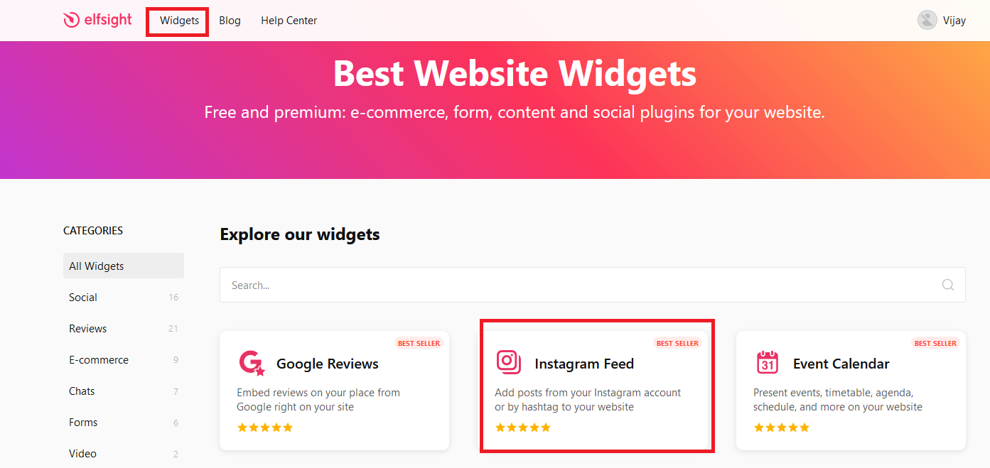 Many third-party platforms are available on the internet, and you can use any platform that suits your needs. In this article, I am using https://elfsight.com to demonstrate how you can generate an Instagram widget script.