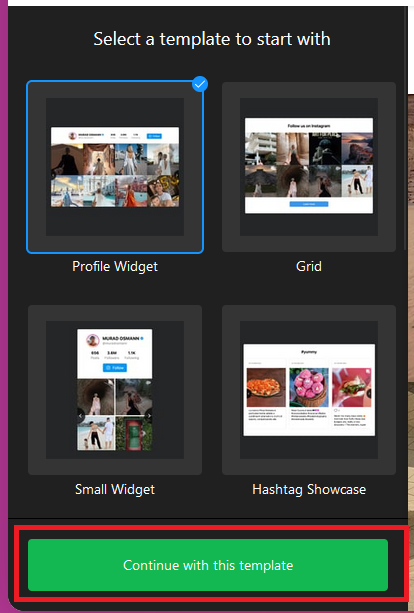 After selecting the Instagram feed, click on ‘Create Widget for Free’