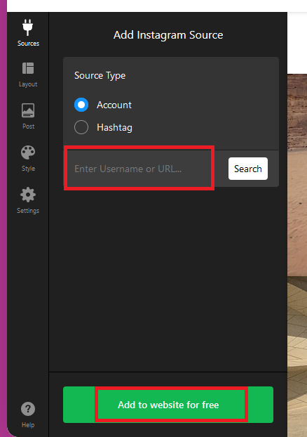 Search for your Instagram handle here, select the correct account, and click on ‘Add to Website for Free.