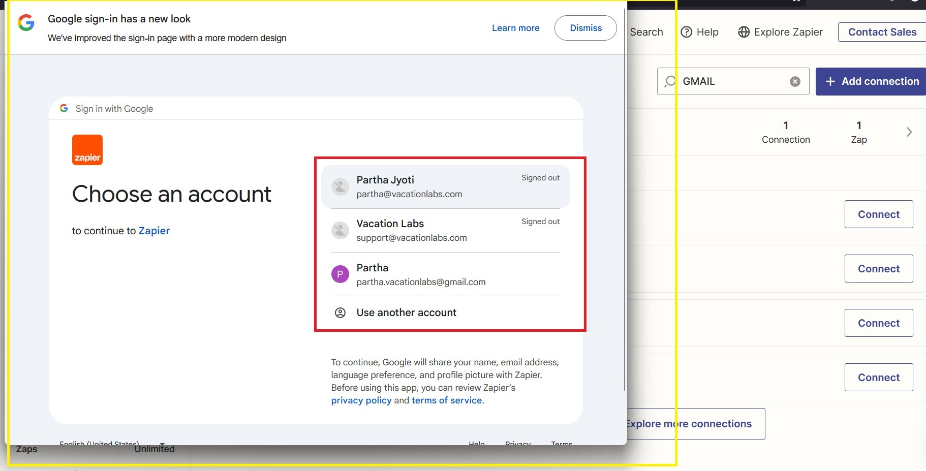 Connecting Gmail Account in Zapier
