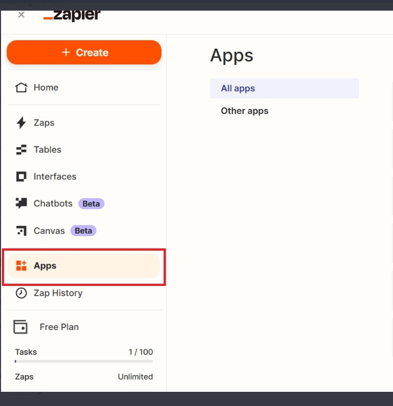 To connect your Gmail account in Zapier, sign in to your Zapier account and go to the Apps section.