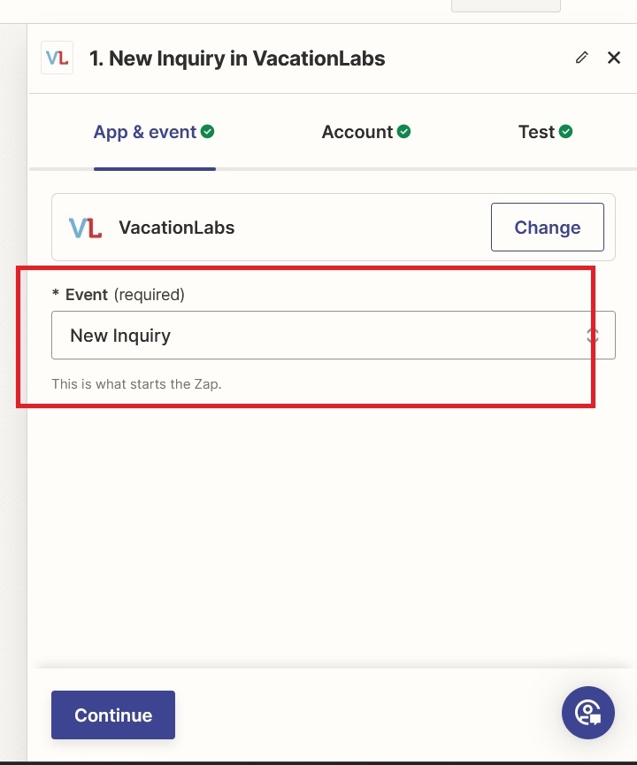 While creating a workflow, after you have selected the app as Vacation Labs: