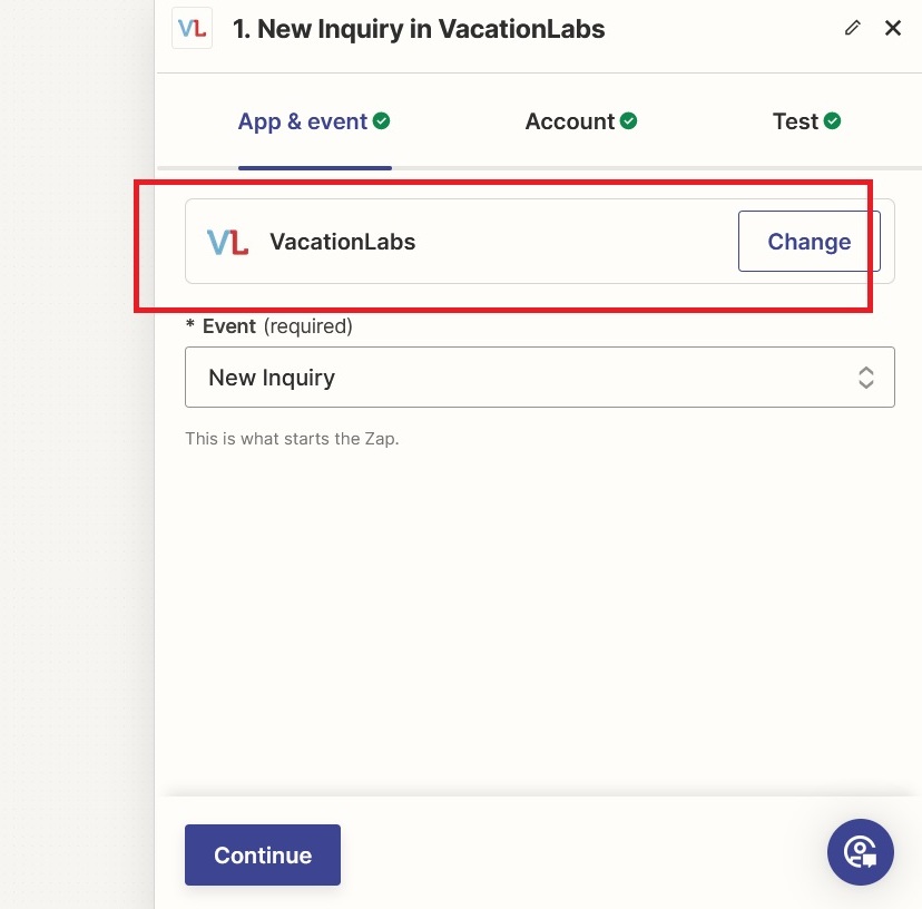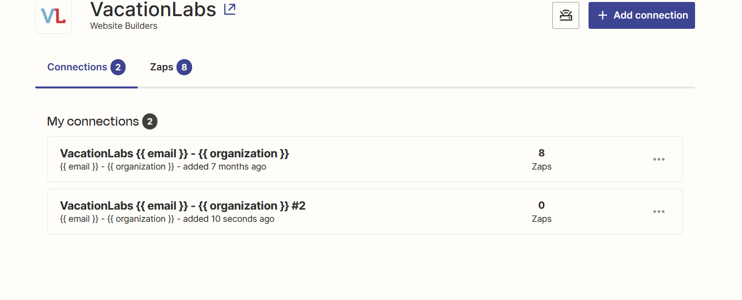 There are two ways in which you can connect your Vacation Labs account with Zapier. Both differ only in terms of the starting point / starting screen. The end-results will be similar: