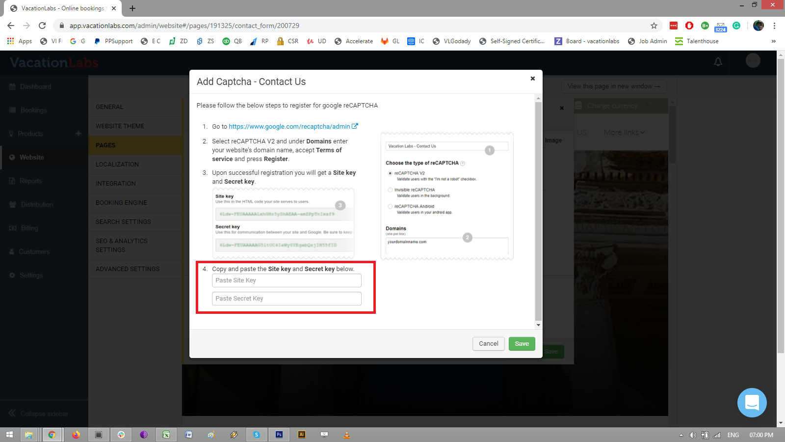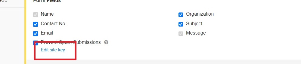 After checking the box, a new text will appear Edit site key (click on it and a pop up will appear)
