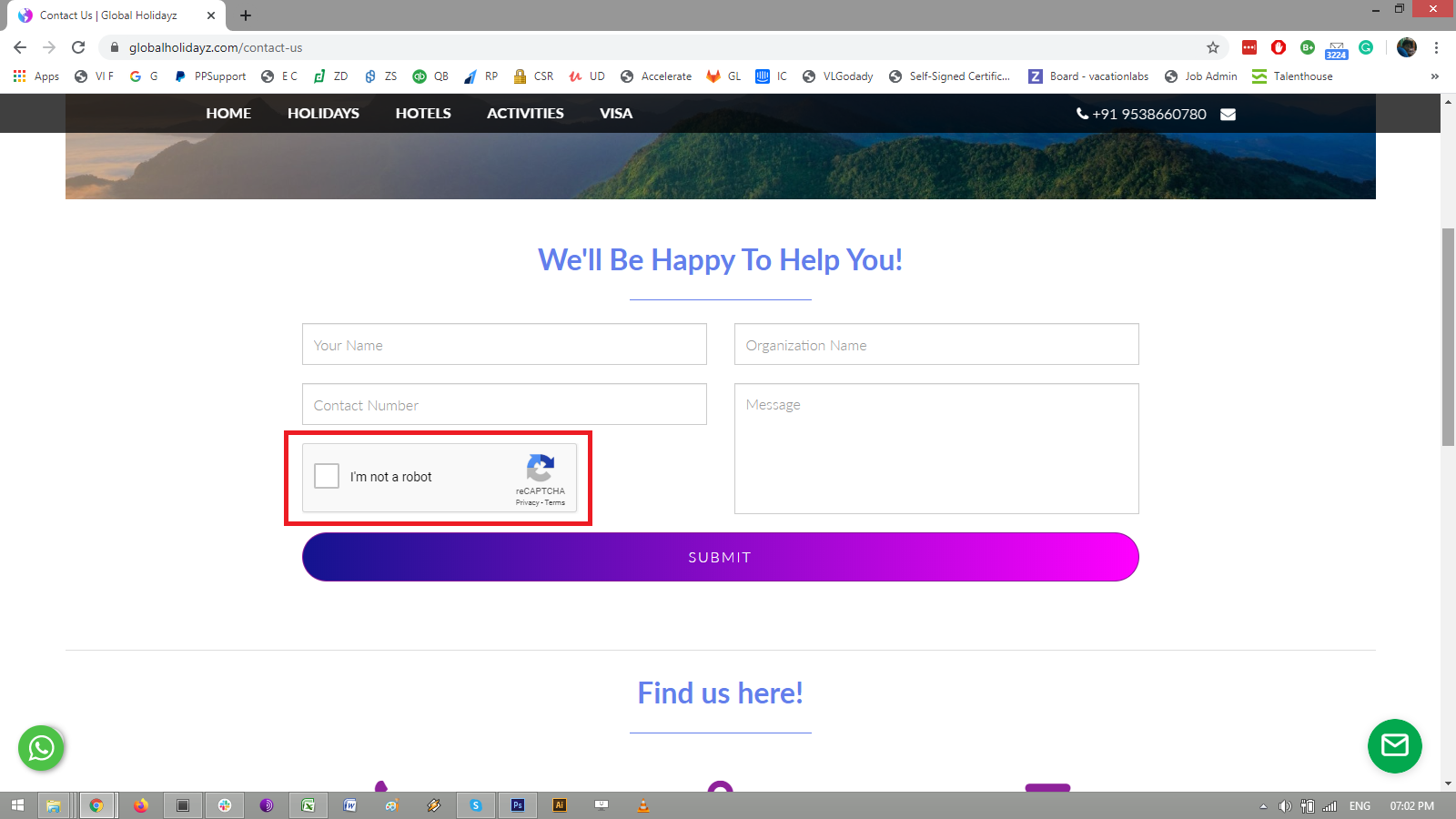The Contact Form won’t work unless captcha is configured. Captch is a technology to prevent bot/spam submissions. Please follow these steps to enable Captcha on the Contact us form: