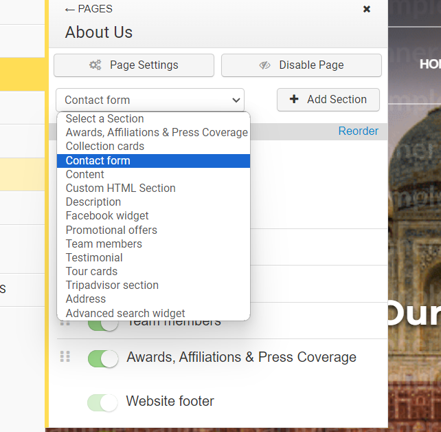 - Enabling Contact Form on the desired page