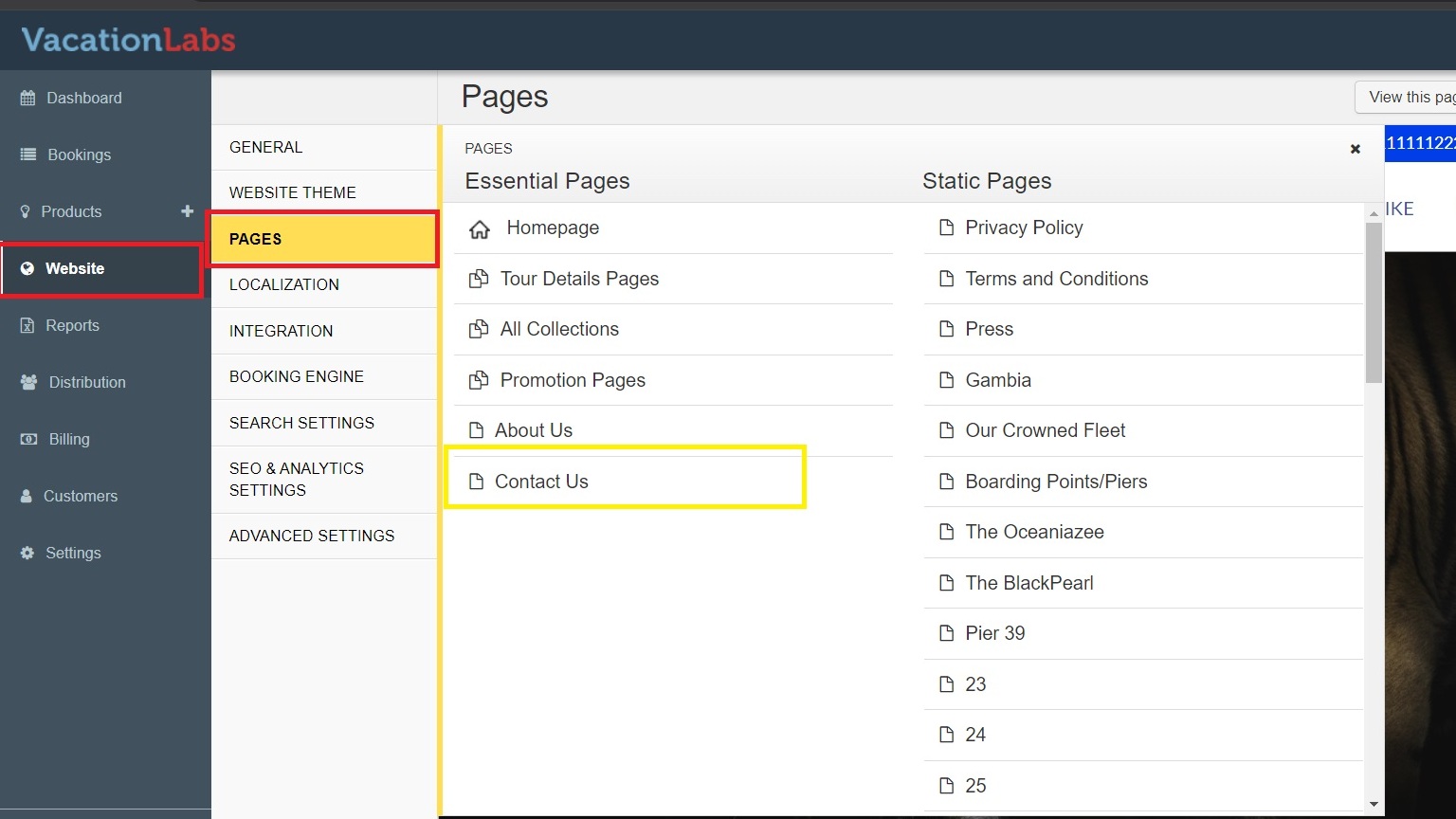 Navigate to Website > Pages Section > Click on the Page on which you want to add a contact us form (in this instance we want to add it to the contact us page - refer screenshot below)