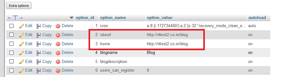Here, update the siteurl and home values to https://www.yourdomain.com/blog (for this example, I updated the URL to https://www.vltest2.co.in/blog)