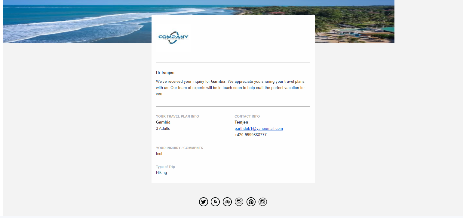 - In this section we will basically trigger an email from the system and ensure that is getting delivered successfully. You can trigger any email (booking confirmation, booking cancellation, payment request, etc) for this purpose. In this section we will walk through a tour-inquiry email