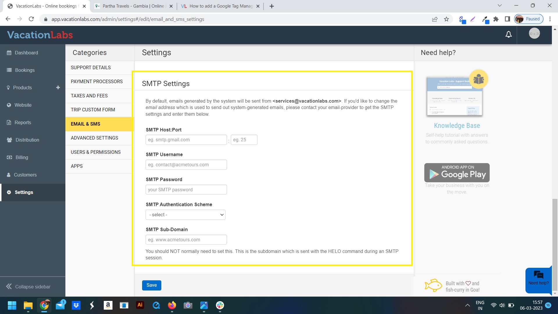 Go into the Settings > Email and SMS Section and scroll down till you find the SMTP Settings (refer the screenshot below)