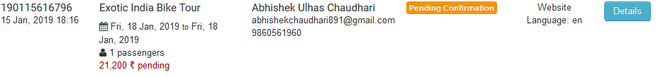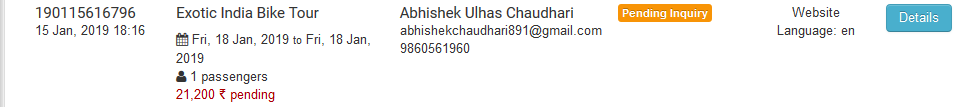 This implies that the Booking is under pending inquiry and needs your approval. This happens if the booking did not have the minimum passengers required for the departure to operate, trip’s booking mode, etc. This can further be Rejected or Confirmed.