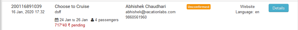 Once a Booking is recorded in the back-office it can be in either a Confirmed, Unconfirmed, Cancelled, Pending Inquiry, Rejected, Cart Abandoned. This states helps you get the overview of any customer booking quickly.