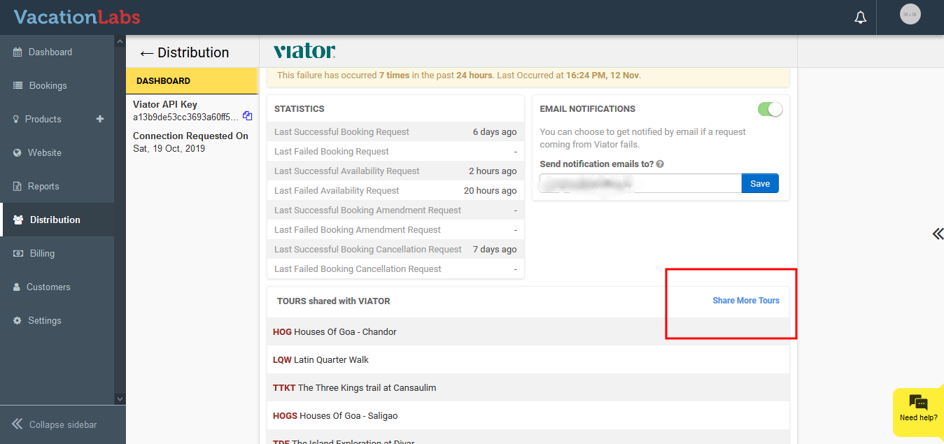 Please check out this article for detailed guide on Connecting Vacation Labs to Viator: