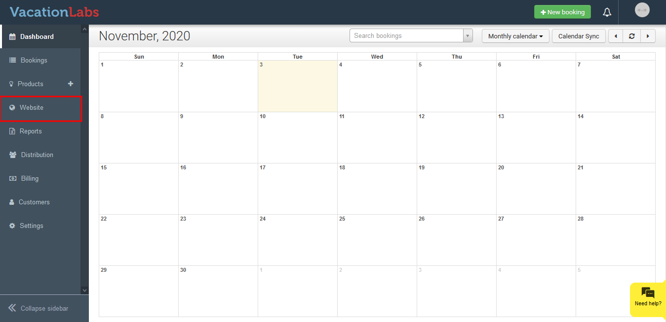 Click on **Website