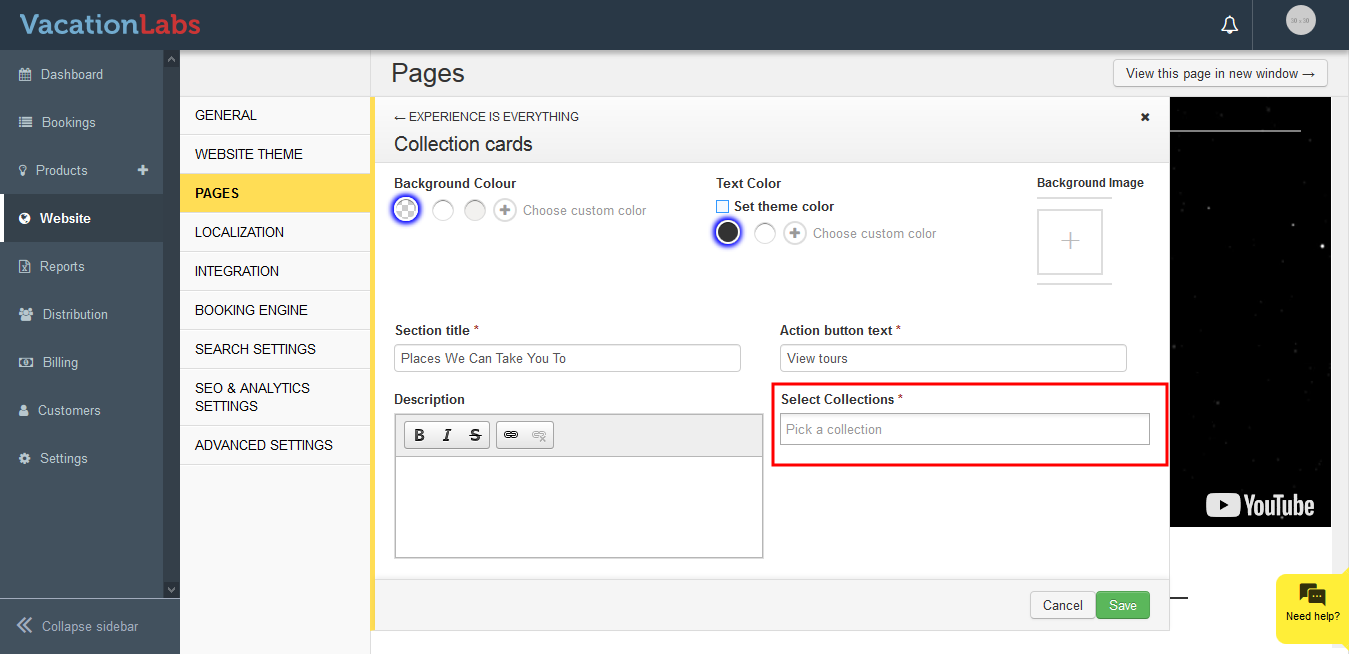 Select the page on which the collection need to be added in Collection Card Carousel