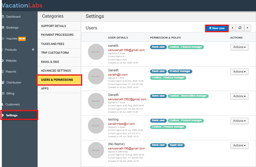 Your Vacation Labs subscription plan allows you to give your team access to the Admin Panel. Each team member can be added as a User, and you can control exactly what parts of the system they can view or manage.