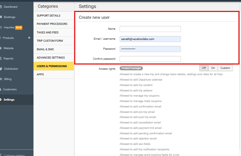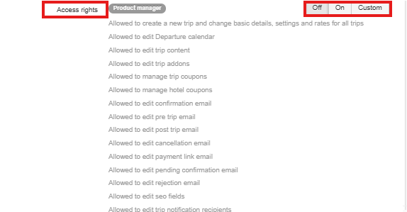 Product Manager – Can manage trips, products, pricing, and related settings.
