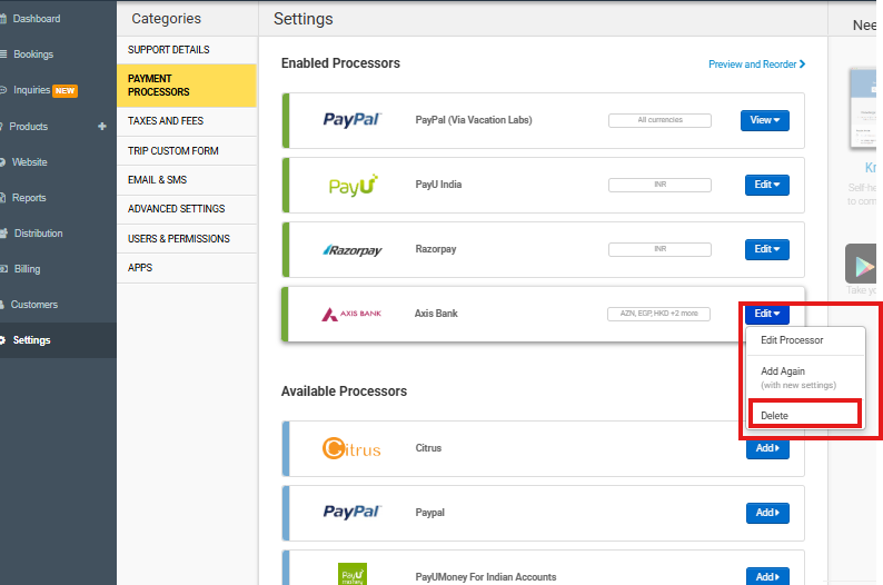 Steps to Delete a Payment Processor: