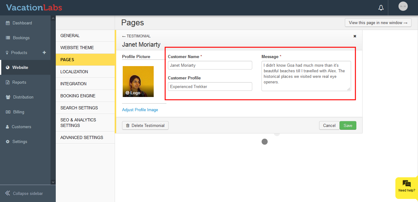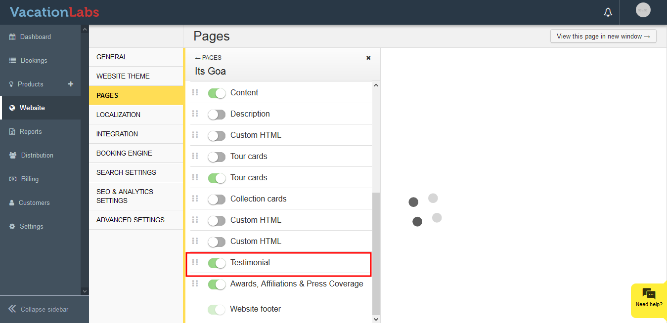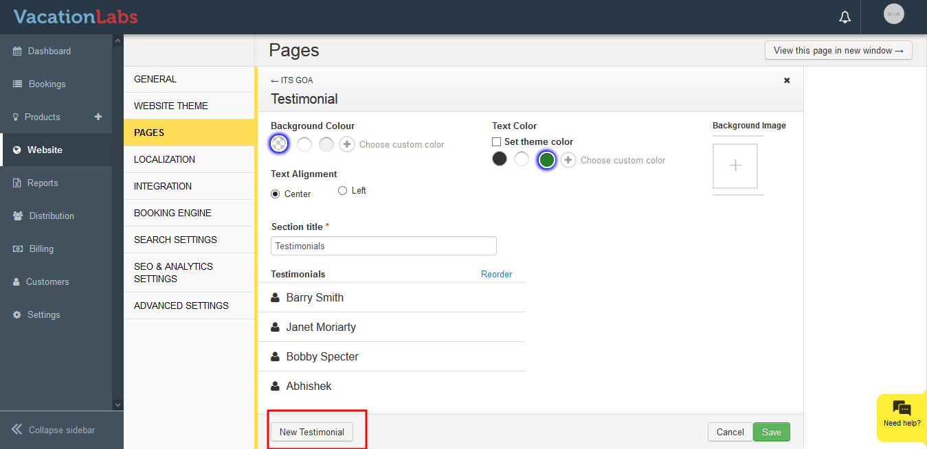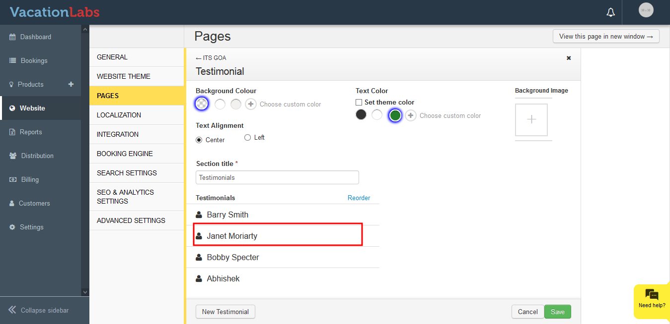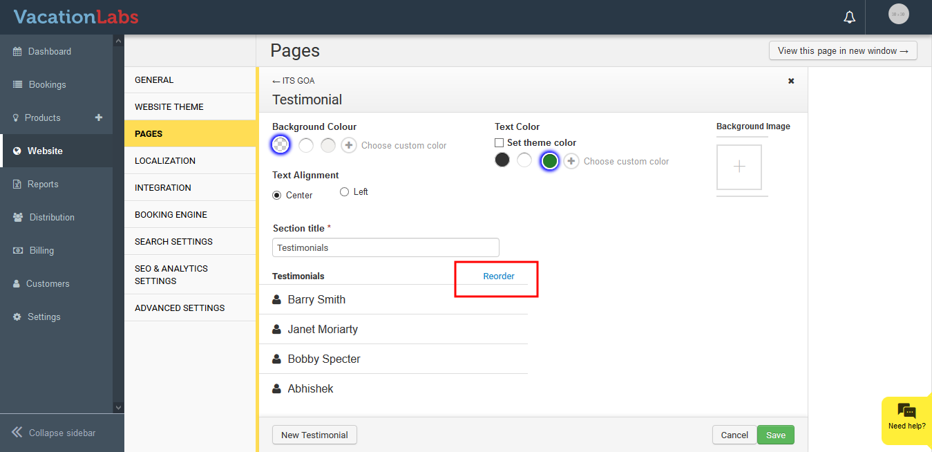 You can also reorder the testimonials using the reorder option in Testimonials Section.