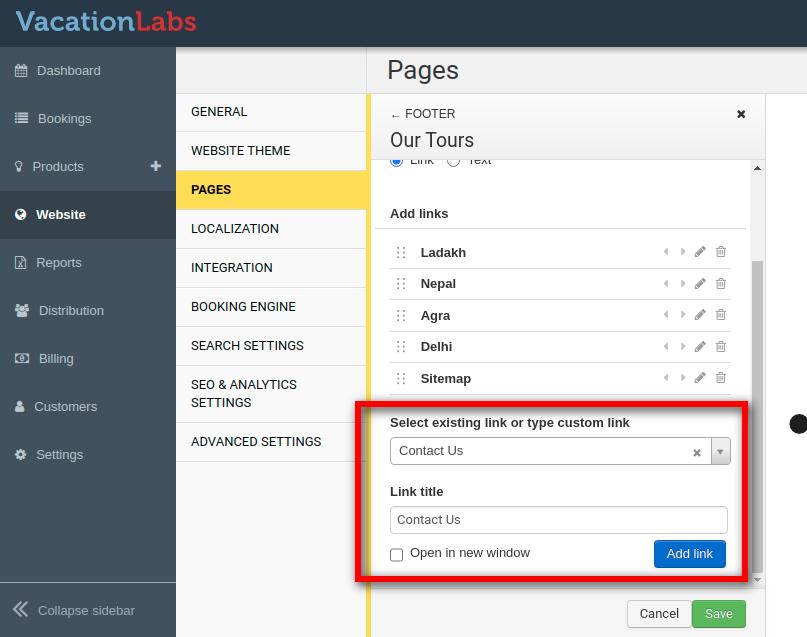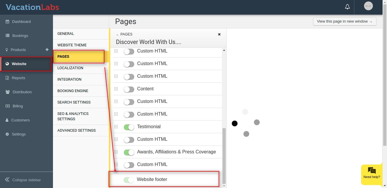 This article we’ll show you how to edit the footer area in Vacation Labs, by accessing it in the back office.