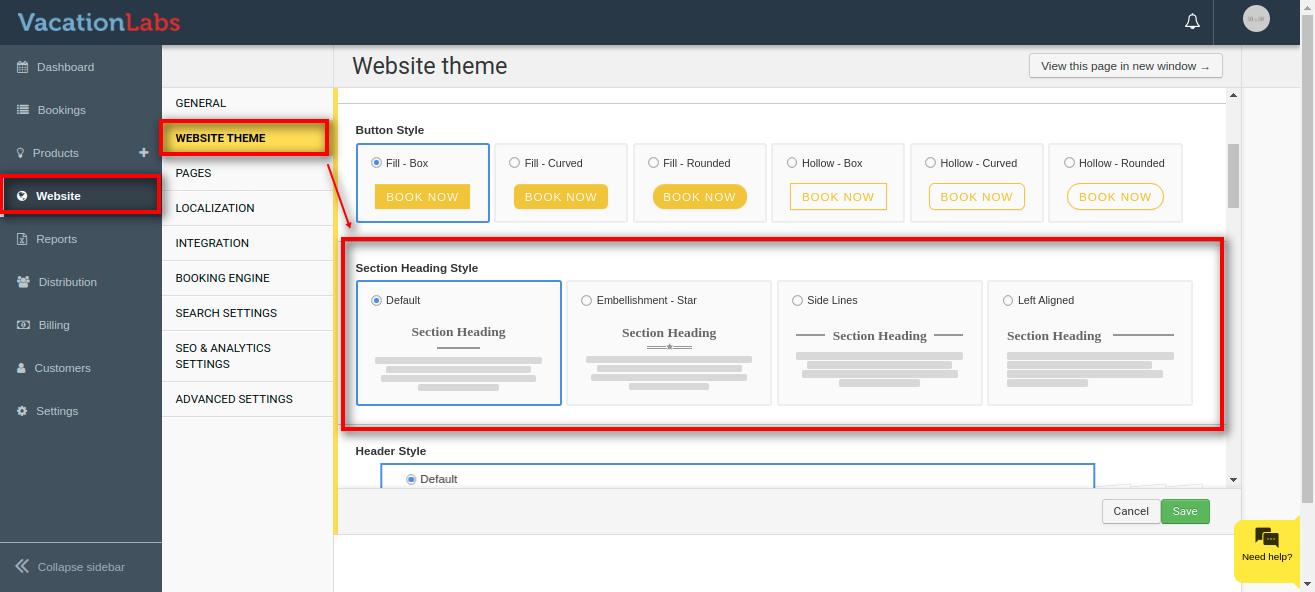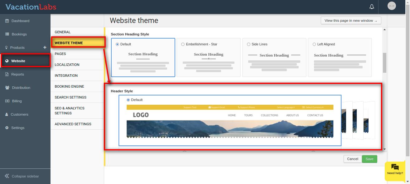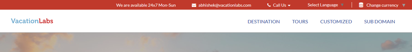 Vacation Labs website builder allows you to total 4 types of Header styles i.e Default, Center Aligned, Reversed, Transparent.