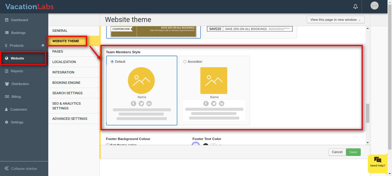 Vacation Labs website builder allows you 2 types of Team Member styles i.e Default and Accordion.