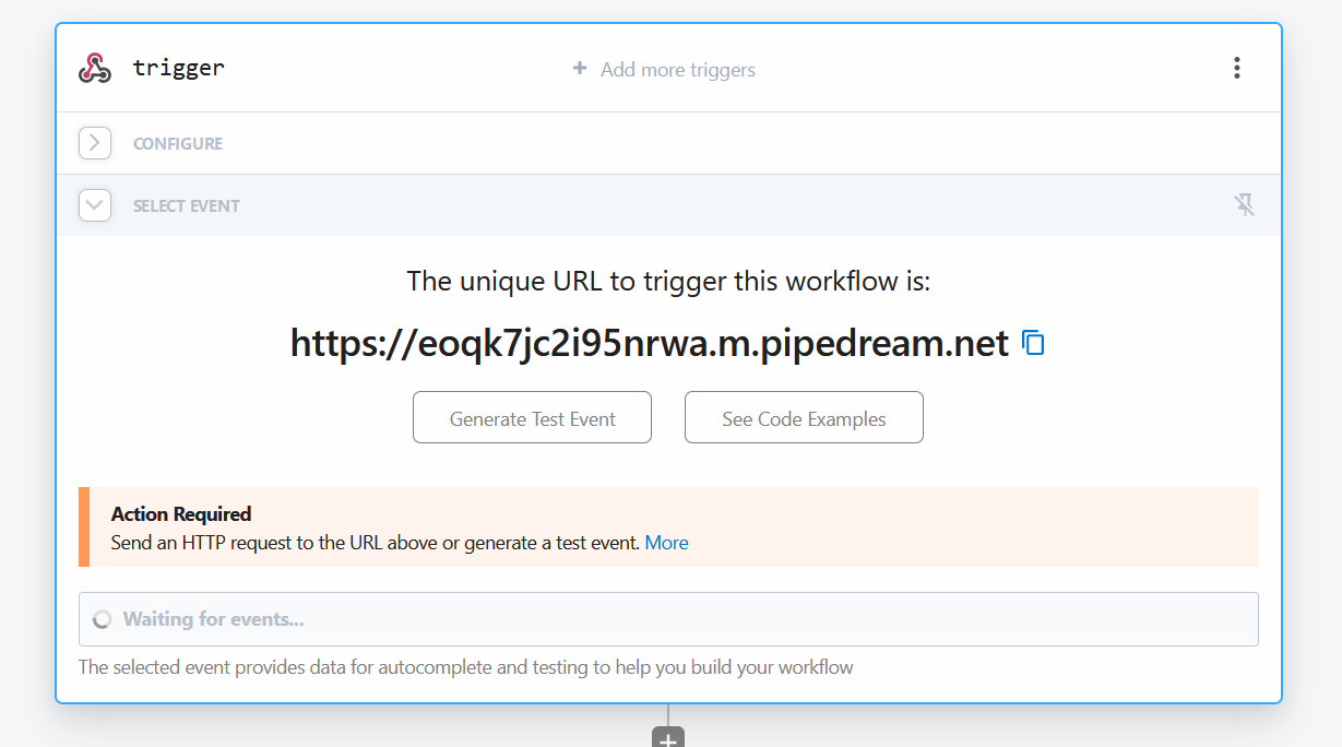On the next page, pipedream will ask you to select a Trigger, click on Webhook (refer screenshot below)