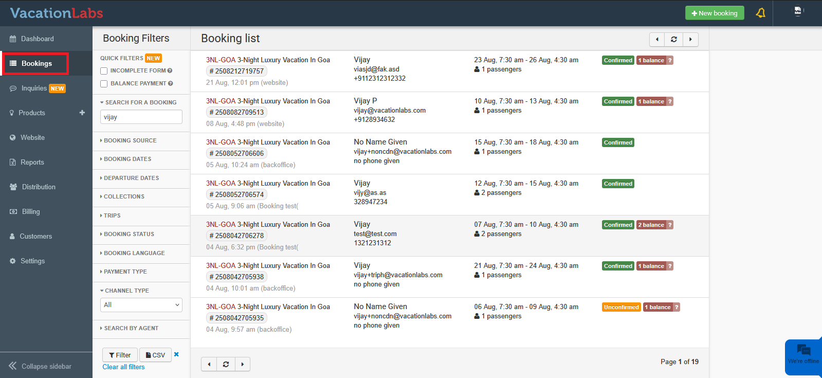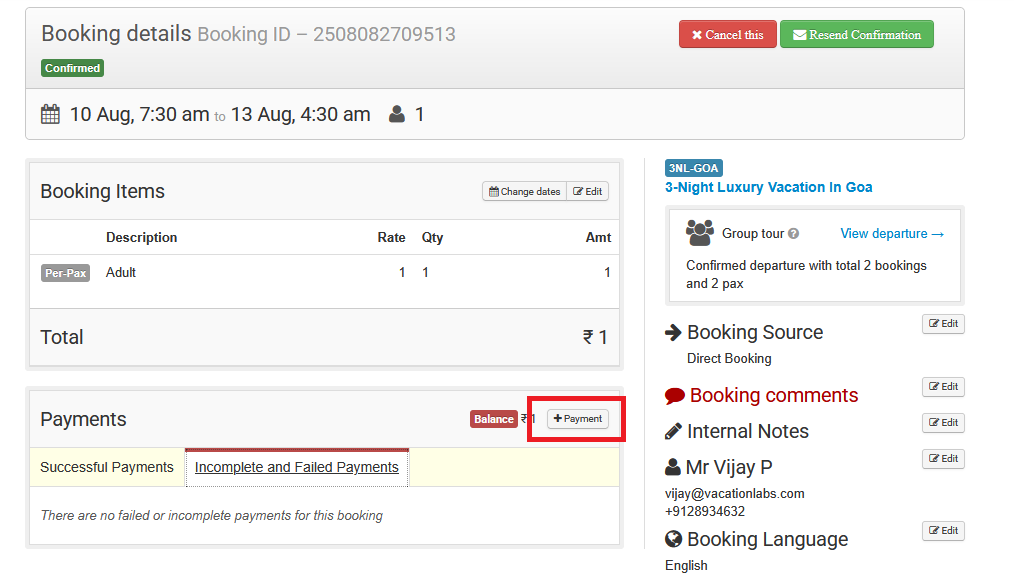 For bookings created directly in the backoffice or bookings with a pending balance, you can send a payment link to customers from the Bookings section so they can pay online.
