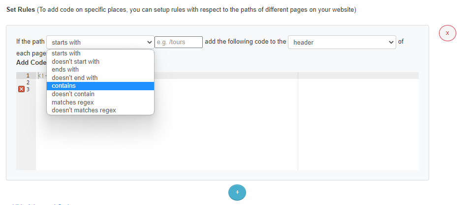 2. Choose the option if path CONTAINS as shown in the screenshot below: