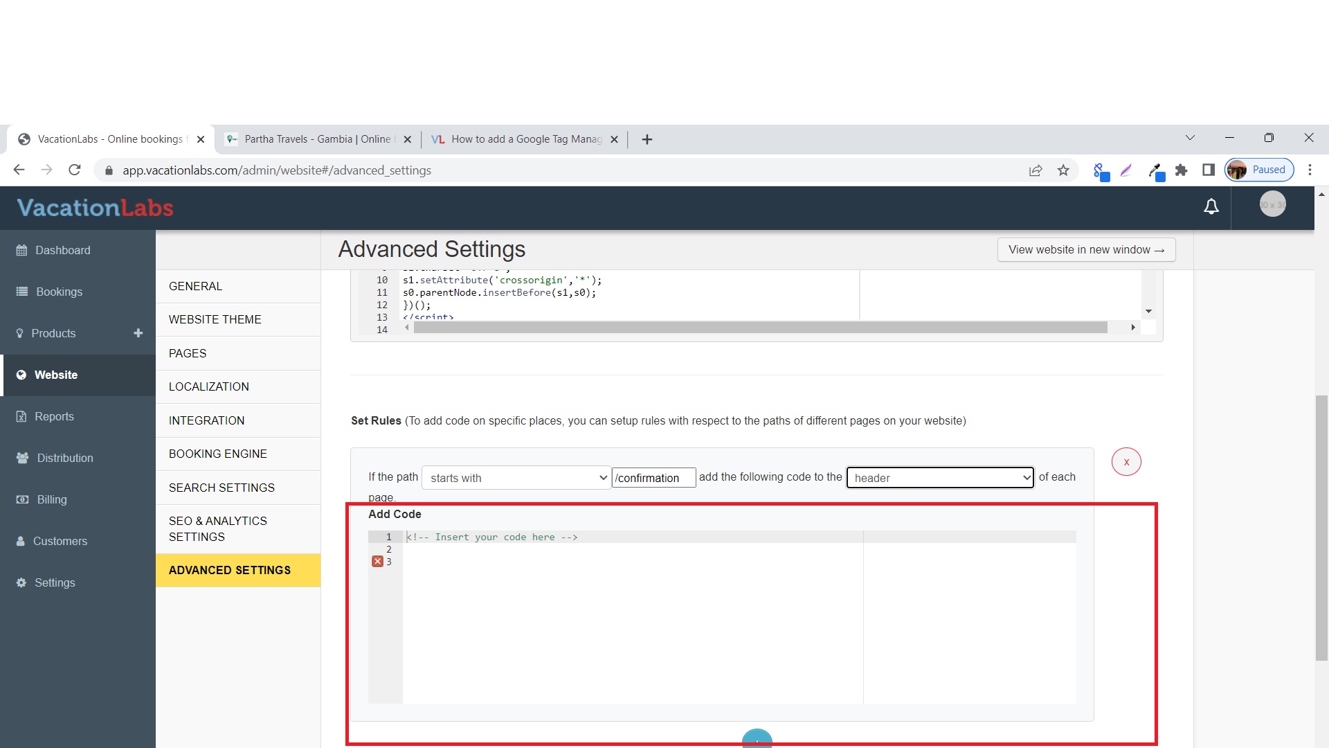 1. Go to Website > Advanced Settings, scroll down till you find the Set Rules section (see screenshot below for reference)