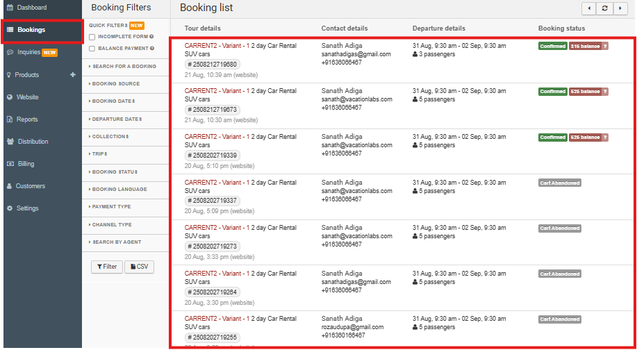 This will open a comprehensive list of all bookings received, sorted with the most recent at the top.