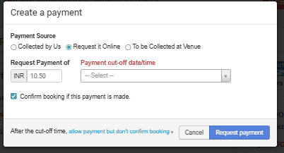 Click this option and a dialog box will appear. Specify the amount and Payment Cut-off time you are requesting the customer to pay.