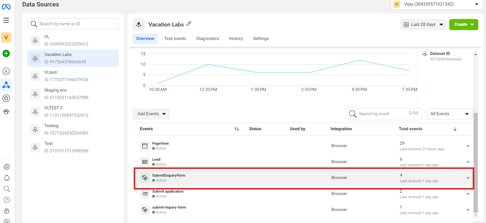 After this, navigate to the website and submit the inquiry form. After some time, the conversion starts recording in the Meta Pixel.