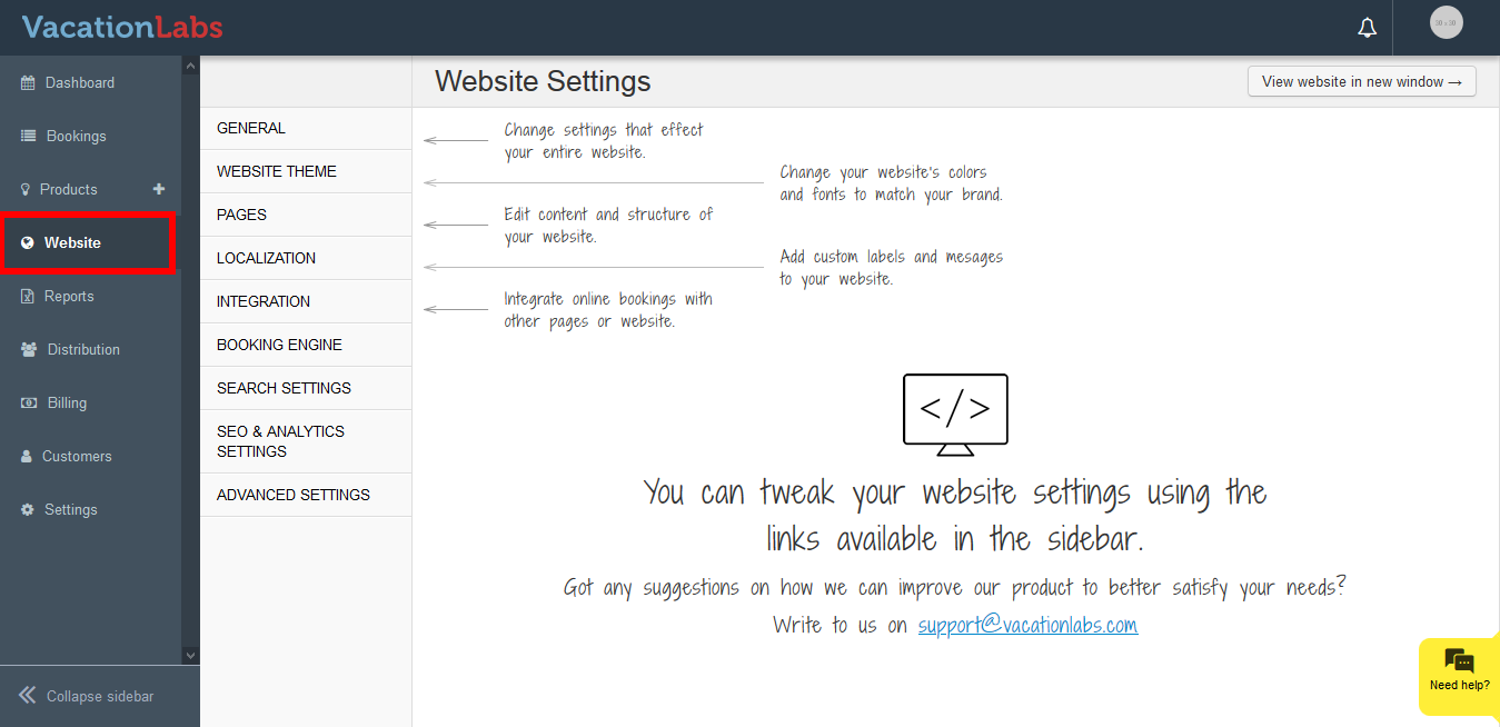 Click on Website tab