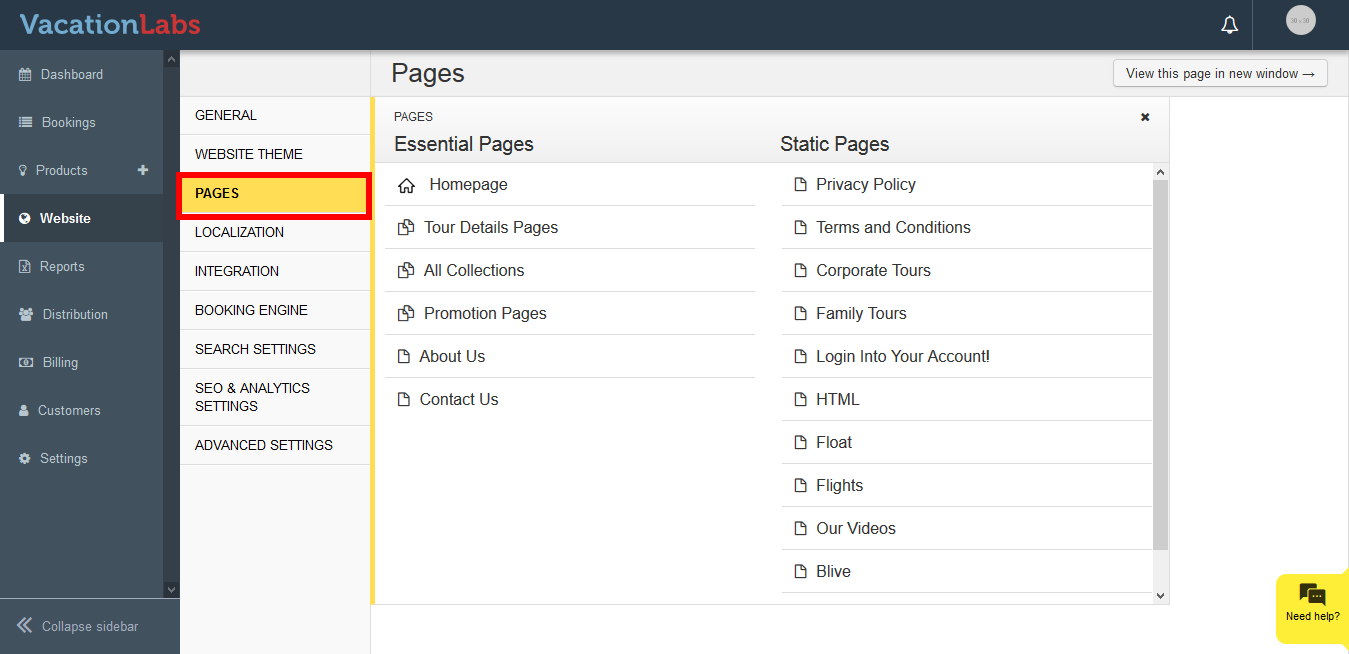 Click on **Pages