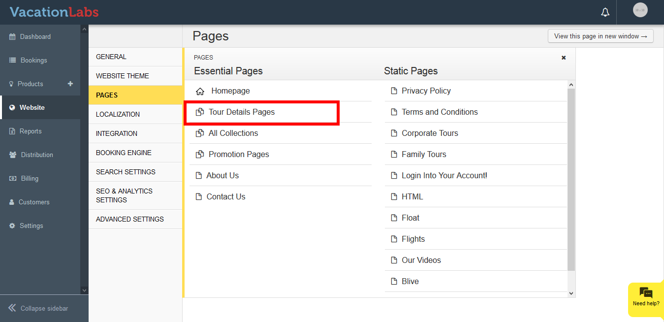 Click on **Tour Details Page