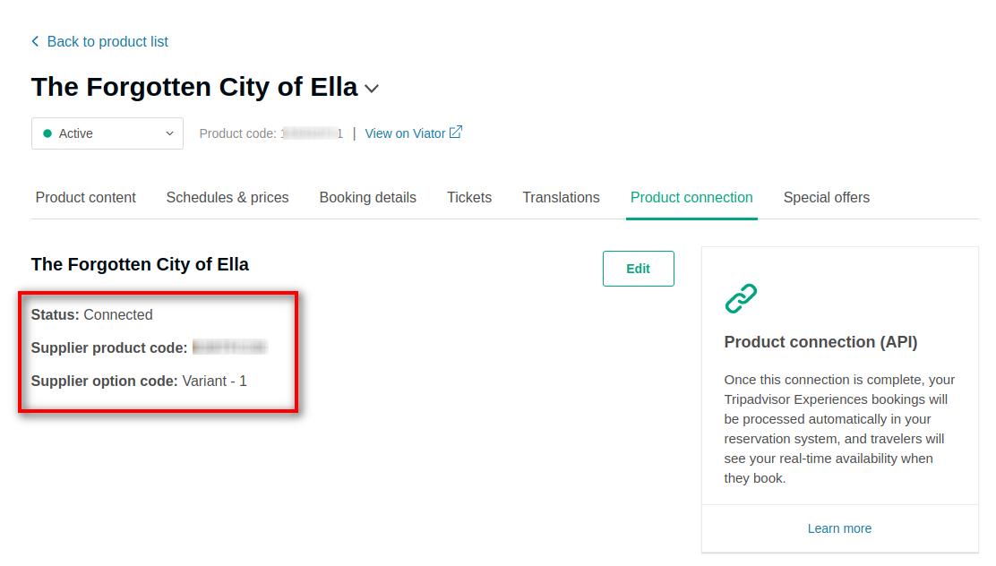 Note: Once a product is mapped it is usually synced and ready within 24 to 48 hours, but can sometimes take longer. If it has been longer than 48 hours and your products are still not connected on Viator, click here to raise a support ticket.