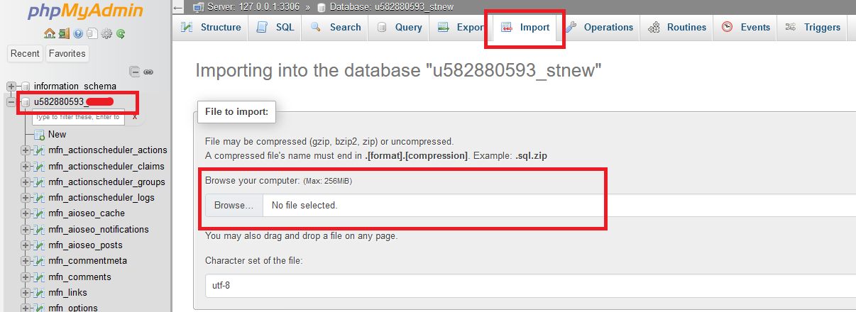 Select the structure and click on Import. Choose the backup SQL file downloaded from SiteGround and click on Import. This will import the entire database.