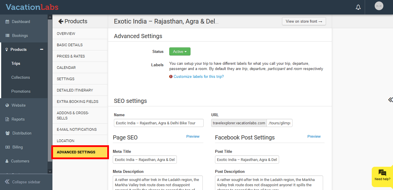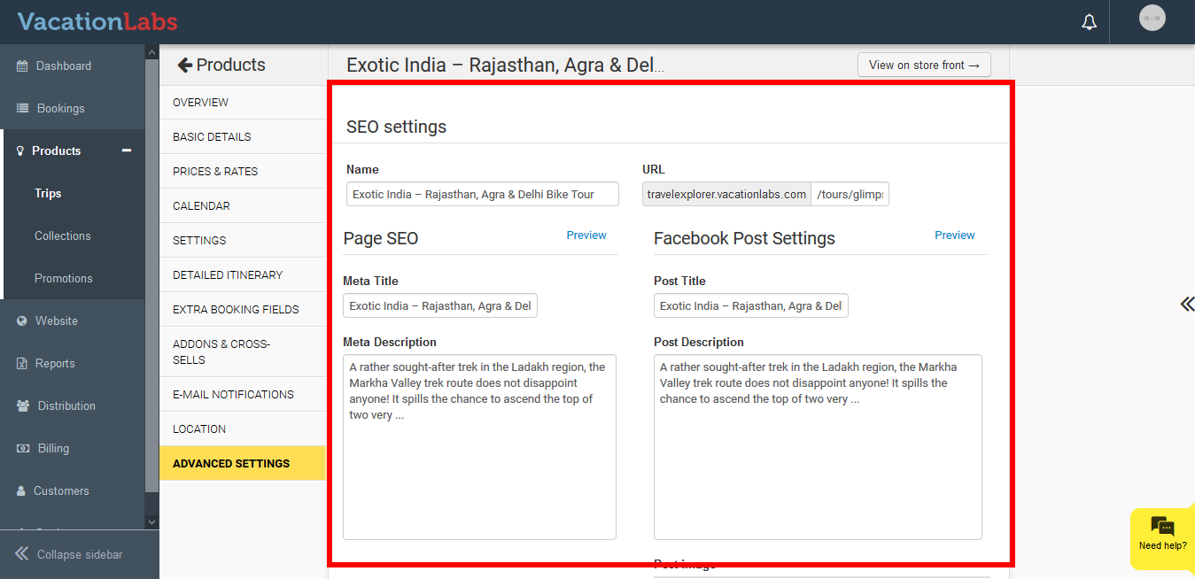 You can find the option to modify the Page SEO, Facebook Post, URL, etc.