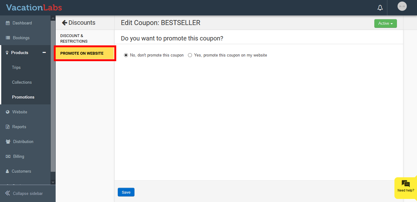 Now to enable promoting on website click on Yes, promote this coupon on my website