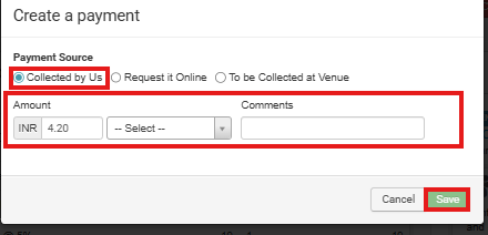 Click the Save button to finalize and record the payment. The booking’s financial status will now reflect this transaction.