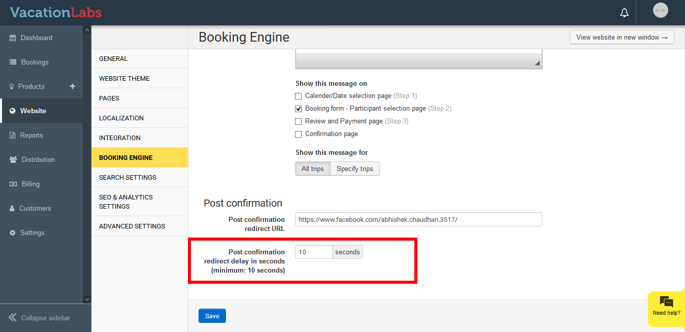 Once a customer completes a purchase, the booking process is over and most likely the user will now leave your website. By using the option to setup a Post confirmation redirect URL you can redirect your customers to visit your Facebook or Instagram page or some other URL within the website.