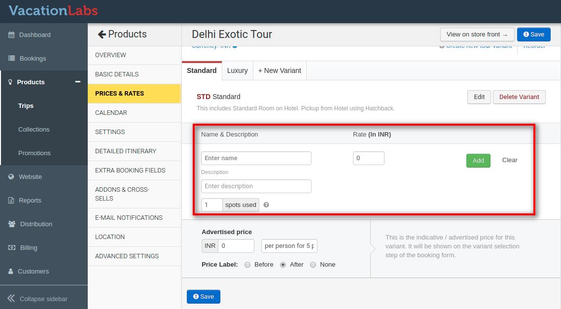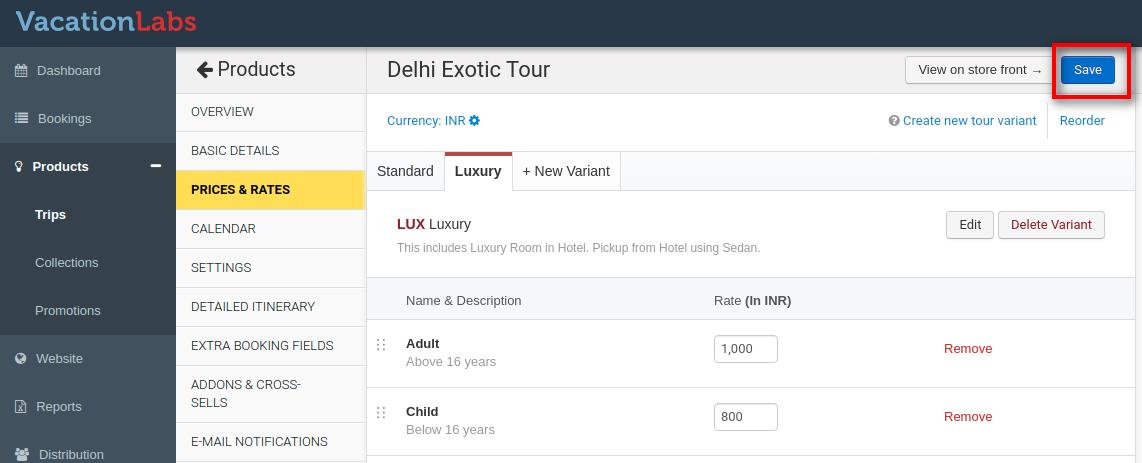 Variants are a great way to sell versions of the same trip at different price points. For example, you may have the Luxury variant or Standard variant of the trip. You may also have a Spanish variant and an English variant or a Weekday variant and a Weekend variant. To create variants please follow the below steps,