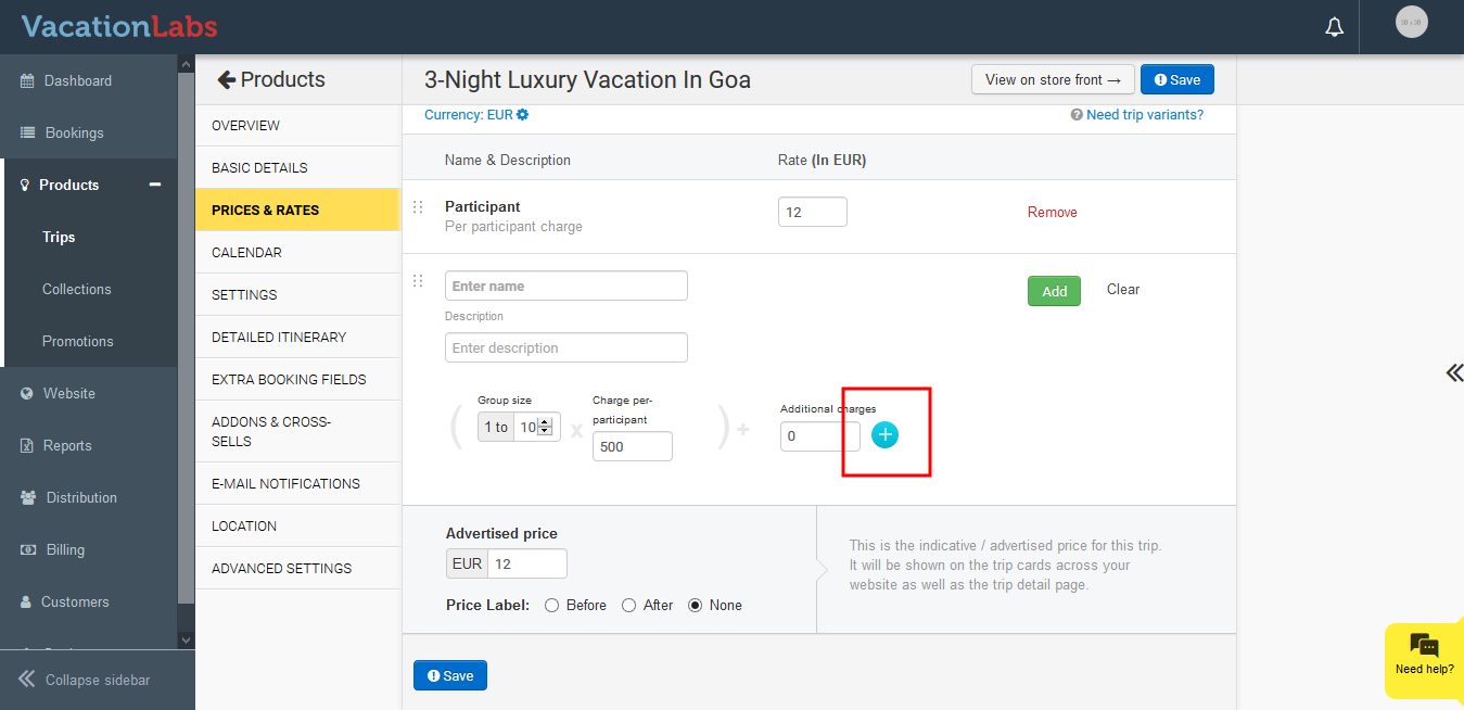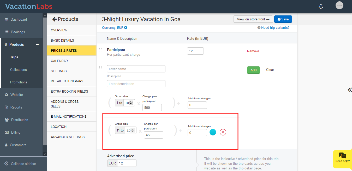 This advertised price is showcased on your trip details page under the BOOK Now button. This is the indicative/advertised price for this trip. It will be shown on the trip cards across your website as well as the trip detail page.