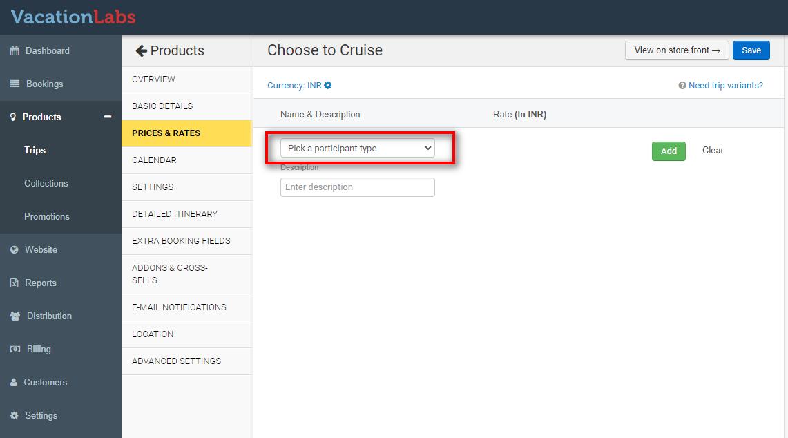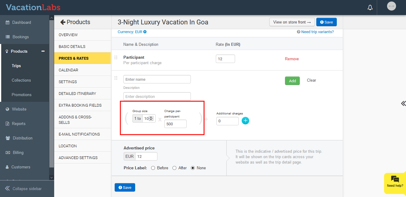 Please Note: This section allows you to configure pricing for a simple adult, child, participant, etc to complex pricing similar to a trip having multiple variants.