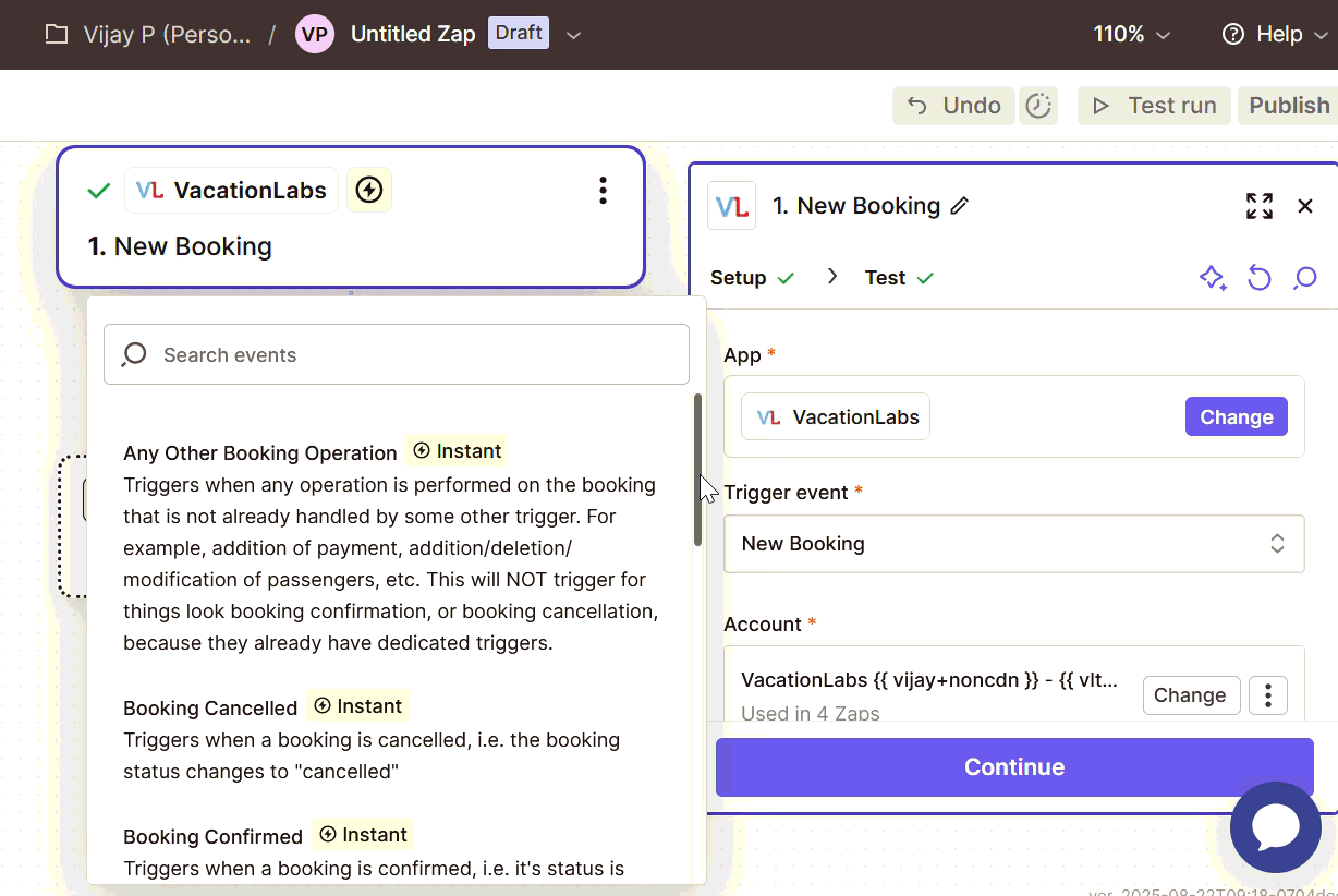 Currently, there are 9 trigger events available on Zapier for Vacation Labs: